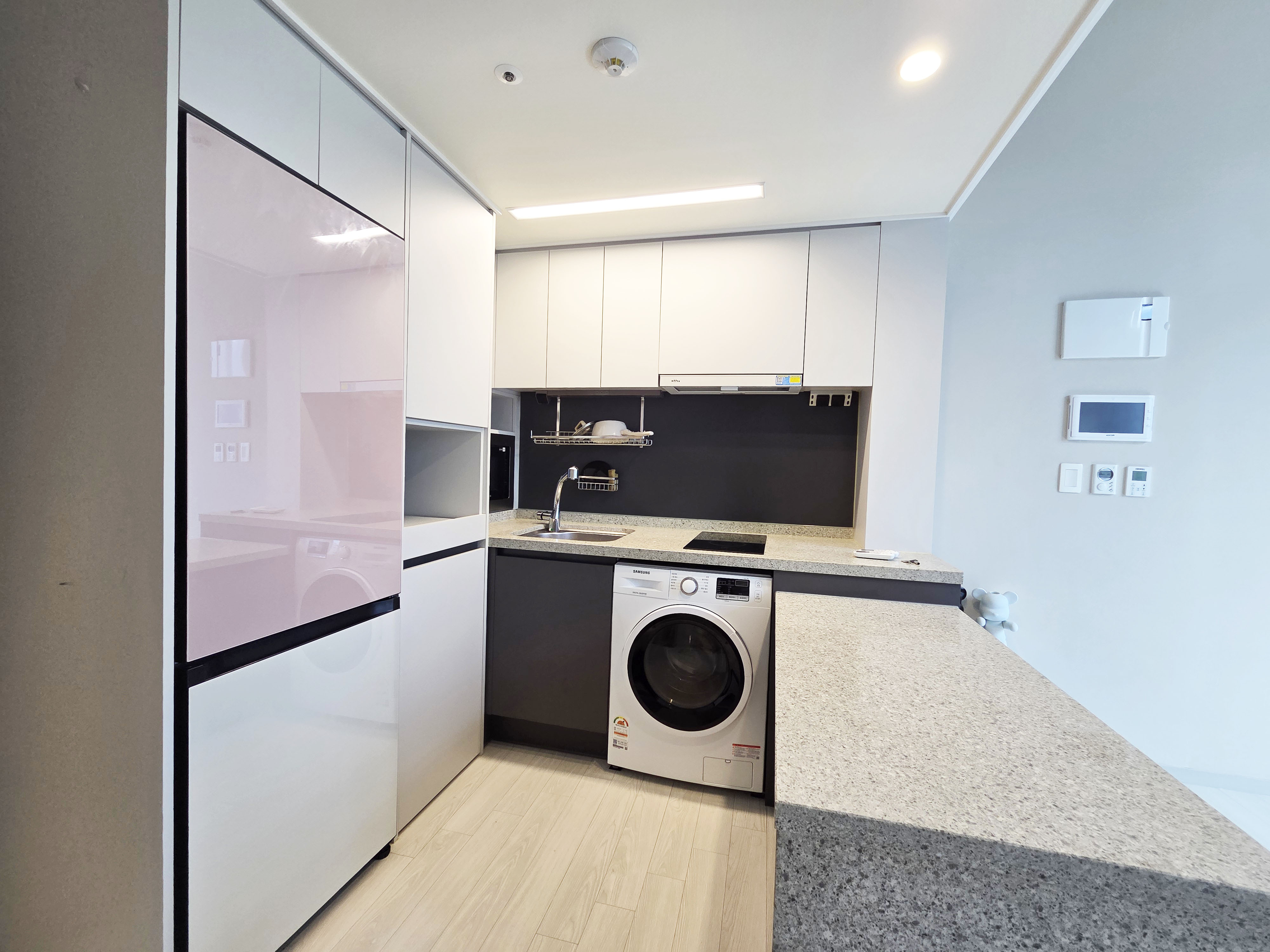 시스템에어컨, 냉장고, 인덕션, 드럼세탁기등 생활에 필요한 옵션은 다 갖추어져 있으며 샤워실도 구분되어있어 생활하시기에 매우 편리한 오피스텔입니다.